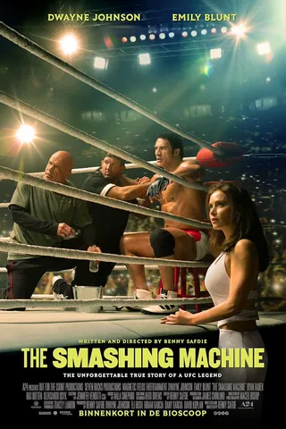 Hyams verwerkt een en ander in de prachtige documentaire The Smashing Machine (2002), die vervolgens bijna niemand ziet. Behalve vechtsporters, die de soms ontluisterende maar altijd eerlijke film wel kunnen waarderen. Een van hen is Dwayne ‘The Rock’ Johnson, die ooit begon als worstelaar en daarna een van Hollywoods bekendste acteurs werd. Johnson wil de documentaire laten verfilmen – met zichzelf als Kerr – en vraagt Benny Safdie (Uncut Gems) als regisseur. Die hapt toe en sinds 6 november draait het vechtsportdrama The Smashing Machine in de Nederlandse bioscopen.