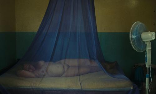 Het zijn films die vaak even aangrijpend mooi zijn als afstotend. Tegenover de confronterend lang aangehouden shots van vetkwabben en geslachtsdelen in Paradies: Liebe staan ook weer die prachtige beelden. Zoals dat van het moment dat Teresa thuis naast haar beach boy onder de klamboe ligt te slapen, wat aan een bizar verdraaid piëta doet denken waarin niet meer duidelijk is wie de ouder is en wie het kind. Een beeld dat elk simplistisch en traditioneel idee over hun onderlinge verhouding op z’n kop zet.