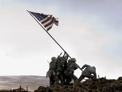 Op 23 februari 1945 verandert de Amerikaanse oorlogsfotograaf Joe Rosenthal in 1/400ste van een seconde de loop van de wereldgeschiedenis. Rosenthal staat boven op de berg Suribachi, een onooglijke puist op het Japanse eiland Iwo Jima . Na vijf dagen vechten hebben Amerikaanse mariniers die berg eindelijk veroverd op de vijand, en zes van hen zijn bezig de Amerikaanse vlag te hijsen. Rosenthal drukt op precies het juiste moment af en maakt naar wat later zal blijken een van de beroemdste foto's van de Tweede Wereldoorlog. We zien een plukje soldaten eendrachtig in de weer, de vlaggenmast nog niet helemaal rechtop , maar de Stars en Stripes wappert al fier in de wind.