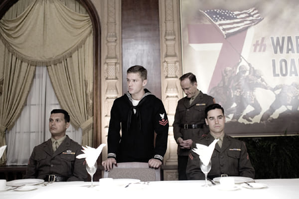 De foto komt als geroepen voor de Amerikaanse regering, die dringend geld nodig heeft om de oorlogsmachine draaiende te houden. De zes worden in Amerika ontboden, maar al snel blijkt dat er van de zes nog maar drie in leven zijn. Het zijn: John 'Doc' Bradley, Ira Hayes en Rene Gagnon. De drie worden onderdeel van een zorgvuldig uitgekiende reclamecampagne, worden heel Amerika door gesleurd, en overal waar ze optreden moeten ze de burgers oproepen zogenoemde 'war bonds' (zeg maar: aandelen in de oorlog) te kopen. De tour is een groot succes - er wordt meer dan 26 miljard dollar opgehaald - maar de prijs voor het drietal is hoog.