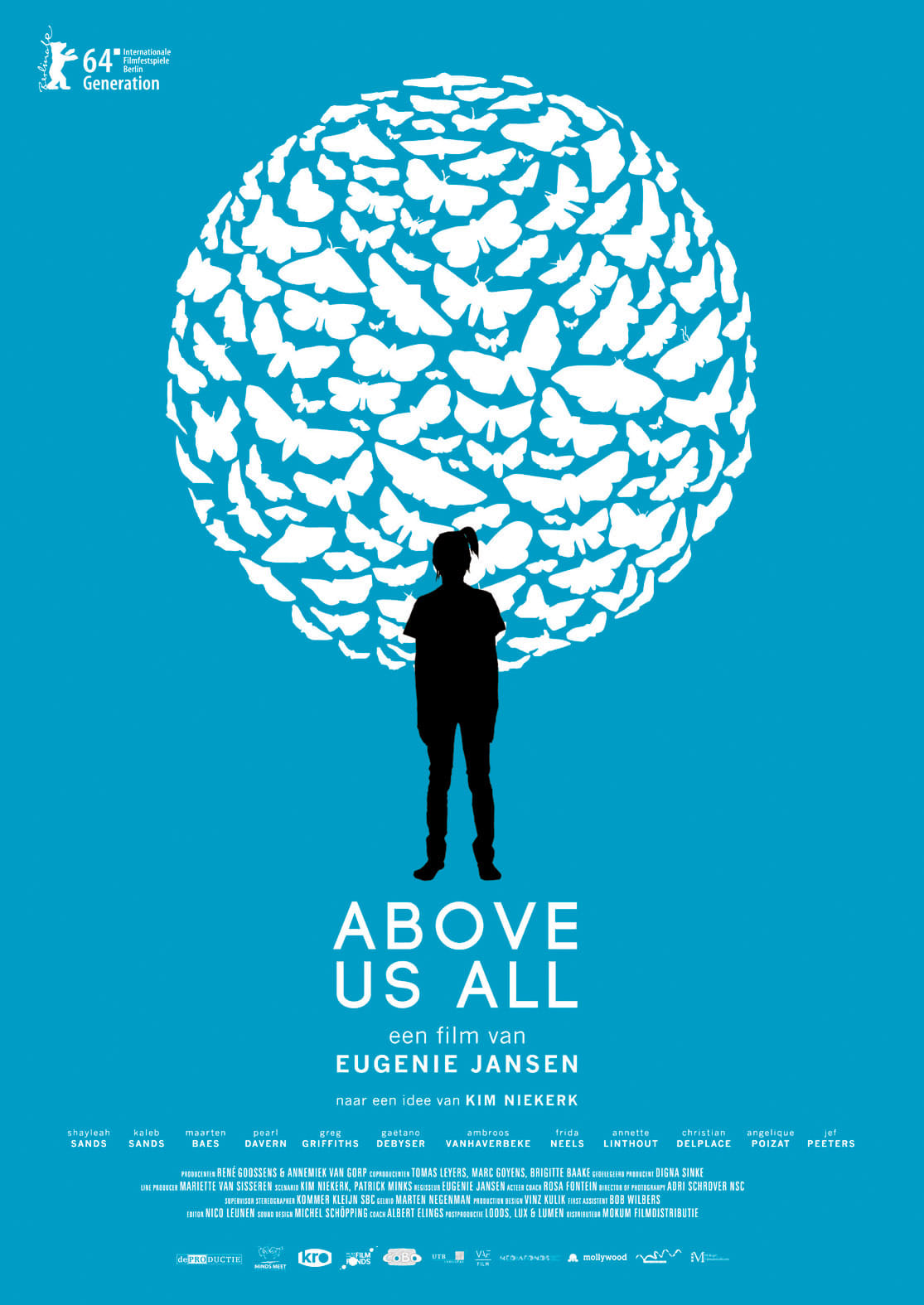 De Vlaamse Amira Daoudi maakte posters voor films als Little Baby Jesus of Flandr, Rundskop en Little Black Spiders. Voor Eugenie Jansens Above Us All 3D, een artfilm in 3D, maakte ze een heldere illustratie in cyan, wit en zwart. De achtergrond is cyan, het zwarte silhouet stelt hoofdolspeelster Shayleah Sands voor. Zij staat voor een (wereld)bol opgebouwd uit in elkaar grijpende vlinders – Daoudi koos voor het poëtische, symbolische beeld nadat ze in Above Us All 3D opeens een gele vlinder vlak voor de almaar cirkels draaiende camera voorbij zag fladderen.