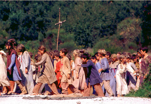 Nog een voordeel van de internationale samenwerking was de beschikking over alle mogelijke locaties. Kruistocht is spijkerbroek is een soort roadmovie; de kinderkaravaan trekt door heel Europa.