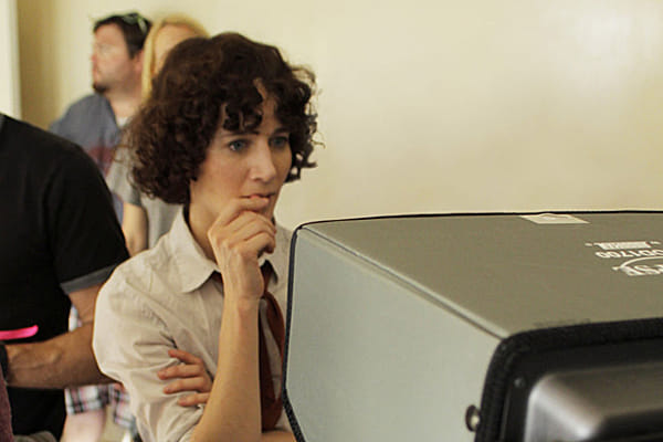 Miranda July op de set van The Future