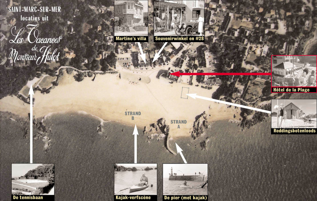 Hoe kwam Tati eigenlijk in Saint-Marc terecht? Kenners kibbelen daar nog over. Volgens de ene lezing heeft een location scout de hele Bretonse kust afgereisd tot hij in Saint-Marc de ideale combinatie van ingrediënten aantrof: niet te groot, niet te klein, het hotel, het pension, het strand, de tennisbaan, het kerkhof, het station. Helemaal klopt dat niet, want veel van die dingen zijn juist niet in Saint-Marc gefilmd. De andere lezing wil dat Tati het strandhotel ontdekte op een prentbriefkaart.