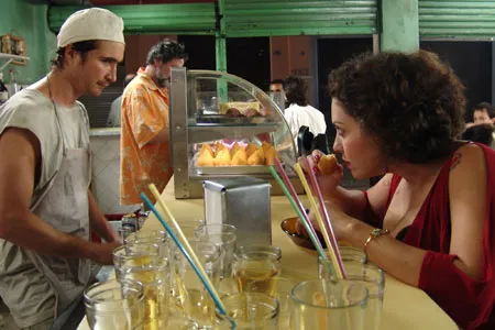 Een beetje eetfilm werkt als culinaire porno. Vaste prik zijn de close-ups van orgastische gezichtsuitdrukkingen wanneer er iets bijzonders wordt geproefd. In Estômago kijkt Íria veel wulpser uit de ogen wanneer ze van Nonato’s kookkunst geniet dan tijdens de seks.