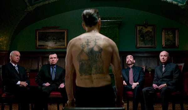 Plaats van handeling is een sauna in Londen. In die sauna zit een Russische gangster. Afgezien van de tatoeages die zijn lichaam van top tot teen bedekken is hij helemaal naakt. En inderdaad: twee mannen met messen komen de sauna binnen. Ze hebben hun pak nog aan, dus iedereen begrijpt dat ze daar niet zijn om de relaxen. Onschuldige omstanders maken zich haastig uit de voeten.