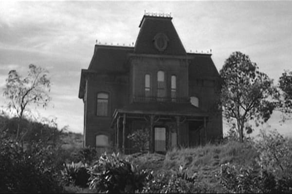 Het klassieke spookhuis heeft een duistere veranda waar het kwaad op de loer kan liggen (Psycho, 1960)...