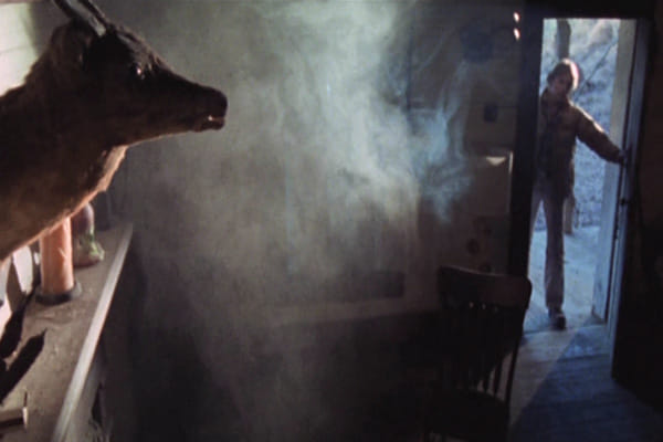 ... is vrijstaand, omgeven door dode bomen, misschien hier en daar een grafzerk (The House by the Cemetery , 1981)...