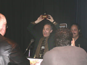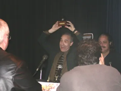 De Toxic Avenger, door de fans liefkozend Toxie genoemd, kwam luid schreeuwend aanrennen toen Kaufman maandagavond uit handen van zijn oude vriend en pornoster Ron Jeremy de prijs kreeg uitgereikt. En poseerde even later met Kaufman voor de opvallend grote groep fotografen.