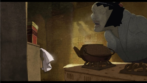 ‘Niet in het eerste stadium van het creatieve proces. Dan bestaat mijn werk alleen uit letters en cijfers: wat gebeurt er en hoeveel beelden duurt dat? Daarna ga ik de personages en de achtergrond ontwerpen, met potlood op papier, en dat scan ik naar de computer. Maar ik maak nooit een storyboard, ik heb alles in mijn hoofd.’
