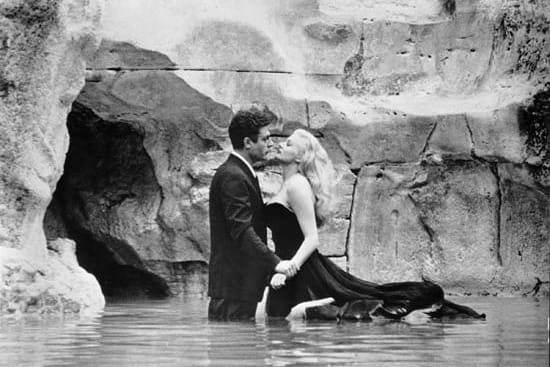 Geen wonder dat Rome een belangrijke rol speelde in het oeuvre van Il Maestro, die zelfs een hele film aan de stad wijdde: Fellini’s Roma (1972). Maar de link Rome-Fellini was al ruim tien jaar daarvoor bepaald met het schandaalsucces La dolce vita (1960). In die film volgen we societyjournalist Marcello op zijn strooptochten door nachtelijk Rome , waar hij van feestje naar feestje trekt. Op zoek naar roddelverhalen en nieuwe veroveringen, maar vooral op zoek naar iets – of iemand – die de leegte in zijn bestaan kan opvullen.