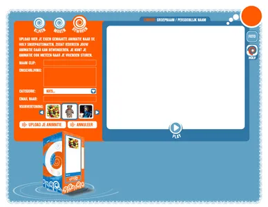 Wil je een animatie maken, dan moet je hier op het pijltje rechts drukken. Om mee te doen moet je eerst inloggen. (Je krijgt dan direkt een wachtwoord naar je e-mail gestuurd.)