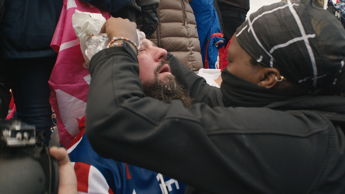 In Homegrown wordt al snel duidelijk hoe de Proud Boys vooral ‘legertje’ spelen in dure camouflage-materieel en stoer willen lijken. Alles wat ze doen livestreamen ze op sociale media. ‘De wereld kijkt,’ zegt Quigley veelbetekenend in de camera van zijn telefoon tijdens een protestrally in Washington eind 2020. Om hem heen doen anderen precies hetzelfde, terwijl ze op zoek gaan naar vaak niet-bestaande antifascistische tegendemonstranten. Weken later, op 6 januari 2021, is Quigley duidelijk te herkennen op de traptreden van het Amerikaanse Congres. Met zijn grote bierbuik, gasmasker en rood-wit-blauwe jas valt Quigley agenten aan en krijgt meerdere keren pepperspray in zijn gezicht. ‘Mijn vrouw die 8,5 maanden zwanger is, en mijn vader, vragen me wat ik hier te zoeken heb,’ ratelt hij tegen een niet-luisterende MAGA-demonstrant. ‘“Denk aan je zoon,” zeggen ze. Ik doe dit juist voor mijn zoon!’ Een maand na de geboorte van zijn zoon wordt Quigley gearresteerd en tot een lange celstraf veroordeeld. Als kijker hoor je zijn vrouw al zuchten.
