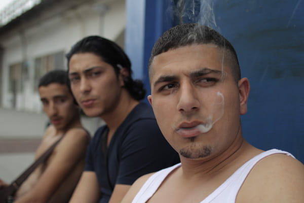 Dat lukt bijzonder goed, met dank aan de camera die zo dicht op de hoofdfiguren zit dat hij haast een van de jongens wordt. Die jongens, dat zijn zes vrienden van een jaar of zestien, zeventien, die elkaar dagelijks treffen op de stoep van de Rotterdamse snackbar van Ali ( Ali Cifteci): Hamza ( Mamoun Elyounoussi), Nouredine (Ilias Ojja), Mo (Ilias Addab), Chiwawa (Aziz Akazim) en Mounir (Lárbi Ahmed Salah) – titaantjes zonder idealen. Een deel van de acteurs is bekend van rollen in de eerdere mocro-movies, een deel plukte Uslu van de straat. Veel van de scènes werden ter plekke geïmproviseerd, waarbij de jongens uit eigen ervaringen putten.