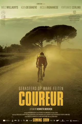 Eenmaal terug in Vlaanderen kwam daar echter een nieuwe droom voor in de plaats: Kenneth Mercken zou filmmaker worden. En nu, negentien jaar nadat hij op een podium in Vlaams-Brabant de Belgische driekleur om zijn schouders gehangen kreeg, is daar zijn prachtige, semi-autobiografische debuutfilm Coureur (vanaf 9 mei in de bioscoop). Waarin, hoe kan het ook anders, een jonge talentvolle wielrenner centraal staat, genaamd Felix Vereecke. Net als Mercken groeit Felix op met een maniakale vader die zijn niet uitgekomen dromen projecteert op zijn zoon, die hem tot het uiterste drijft en die hem in aanraking brengt met doping. En net als Mercken gaat hij uiteindelijk ten onder aan prestatiedruk, drugs en een falend lichaam.