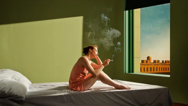 Deutsch is niet de eerste en zal niet de laatste regisseur zijn die inspiratie put uit Hoppers werk. En dat is niet toevallig, want de stijl van de kunstenaar is behoorlijk filmisch te noemen en werd zwaar beïnvloed door de cinema. Hopper was een groot fan van Alfred Hitchcock en de film noir en heeft toegegeven dat als hij eens geen inspiratie had om te schilderen, hij een week lang alleen maar naar de bioscoop ging om zich over te geven aan het witte doek. Niet verwonderlijk dat de bioscoopzaal zo prominent aanwezig is in bijvoorbeeld New York Movie (1939) en Intermission (1963), twee werken die Deutsch ook weer gebruikt in Shirley. Het is een mooie illustratie van de wederzijdse liefde tussen film en schilderkunst. De twee hebben altijd een innige band met elkaar gehad en sinds de geboorte van de cinema is er een constante uitwisseling geweest tussen deze disciplines, die vele verschillende vormen aannam.