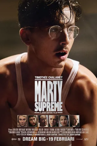 Marty Supreme is losjes gebaseerd op het leven van de Joods-Amerikaanse tafeltenniskampioen en hosselaar Marty Reisman. Josh Safdie (Good Time, Uncut Gems) las diens autobiografie The Money Player en liet daar vervolgens zijn fantasie flink op los. In de film heet de hoofdpersoon Marty Mauser, en als we hem ontmoeten, in New York anno 1952, werkt hij in een schoenenzaak. Met zijn vlotte babbel kan hij naar eigen zeggen nog schoenen verkopen aan een geamputeerde, maar het enige waar hij in het leven écht om geeft is tafeltennis. Een sport waar hij in Amerika nauwelijks erkenning voor krijgt, ook al behoort hij tot de wereldtop. Als Marty het op de British Open aflegt tegen een Japanse speler is hij vastbesloten zich te revancheren op het wereldkampioenschap in Mumbai. Om daar te komen heeft hij echter geld nodig – meer geld dan hij als schoenenverkoper kan verdienen. En hij hééft al zo veel sores: schulden, gedoe met de politie, een getrouwde vriendin die beweert dat ze zwanger van hem is.