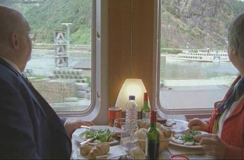 Conceptuele roadmovie waarin de makers met de Rembrandt Expres langs het stroomgebied van de Rijn reizen, van Chur in de Zwitserse Alpen door Duitsland naar Amsterdam- Centraal. Zij focussen op een aantal treinreizigers en filmen en passant het uitzicht (het pretentieuze motto is van Schopenhauer: Bei gleicher Umgebung lebt doch jeder in einer anderen Welt). Met veel bespiegelingen en terloopse opmerkingen in voice-over, zoals: 'Ik heb vandaag nog geen enkele smakele jongen gezien' en 'Het leven is een kwestie van geluk'. Als er niet wordt gekakeld, klinkt Das Rheingold van Wagner.