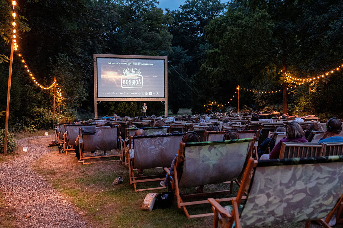 Op Buitenplaats De Hoorneboeg in Hilversum kun je ‘s zomers midden in het bos – zodra de schemering invalt – mooie films zien waar je hart vanzelf warm van wordt, die je hoop geven of juist stof tot nadenken. In augustus wordt overdag een workshop-programma georganiseerd dat aansluit op de film van de avond. De Bosbios wordt georganiseerd in samenwerking met Cinetree en het Filmtheater Hilversum.