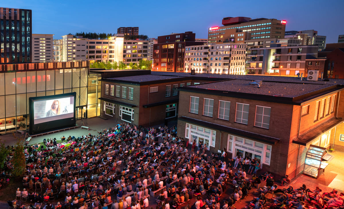 Op de binnenplaats van de Verkadefabriek kunnen bezoekers twee maanden lang iedere dinsdag t/m zaterdag de nieuwste films en filmklassiekers bekijken. Vanwege een verbouwing aan de Serre is de Buitenbios dit jaar verhuisd naar een nieuwe plek: het Zomerterras! Deze kan je vinden bij filmzaal 4 en 5.
