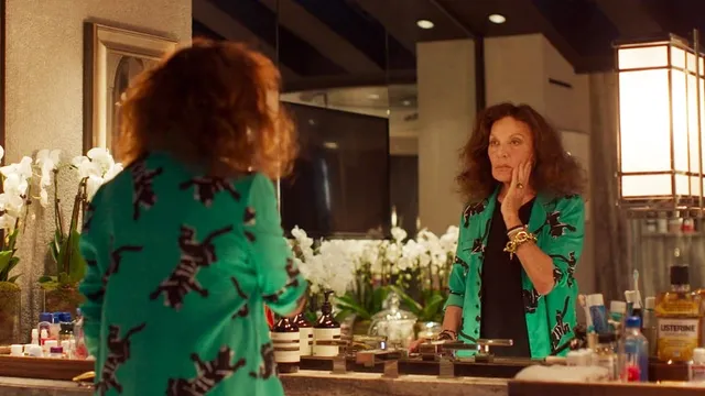 Diane von Fürstenberg klimt in de wastafel, haar blote benen vol ouderdomsvlekken, om zich voor de spiegel op te maken. Op haar 76ste is ze nog altijd een beeldschone vrouw, al is dit niet de meest flatteuze pose. Maar dat kan haar weinig schelen, zoals ze zich haar leven lang weinig aantrok van wat de rest van de wereld van haar vond.