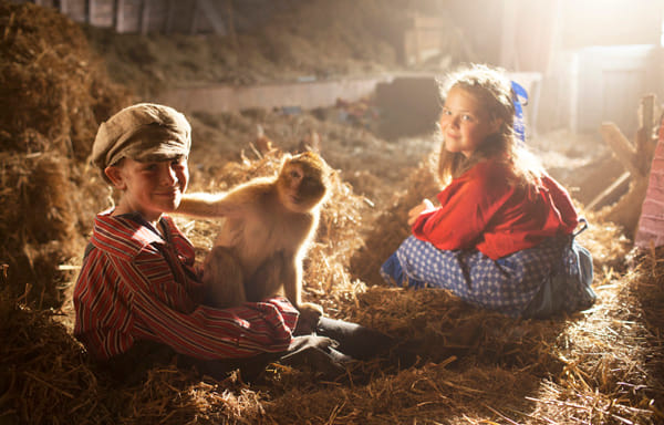 In de zwart-witte wereld van Apenstreken staan de grote gemene mensen tegenover de besmeurde koppies van de arme kindertjes. Zo grauw en kil de stad, zo idyllisch en warm het platteland: een folkloristisch land van melk en honing, fruit, vis, vlees en eieren. Waar Yvon Jaspers voor de klas staat en ook nog een lammetje wordt geboren.