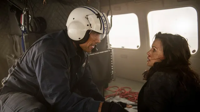 Ray Gaines (Johnson) is de man van weinig woorden, gedreven tot heldhaftigheid door een trauma uit het verleden. Zijn ex Emma ( Carla Gugino) is de vrouw in nood, Lawrence ( Paul Giamatti) is de wetenschapper die de ramp al voorspelde en dochter Blake ( Alexandra Daddario) is er vooral vanwege haar uiterlijk. Want die laatste mag dan 'haar mannetje staan' tijdens alle ellende, als ze haar inventiviteit en moed toont, doet ze dat wel met een ridicuul decolleté.