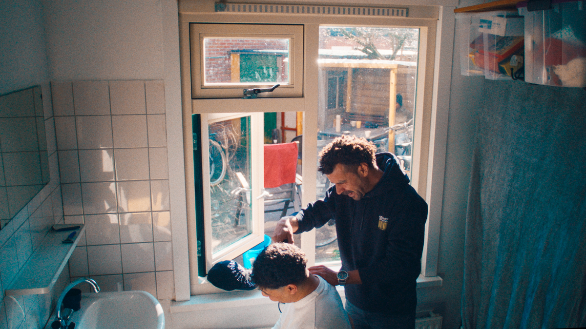 ‘Hier in Utrecht hebben ongedocumenteerde mannen een nogal slechte reputatie,’ vertelt Myrthel van der Ploeg aan de telefoon. ‘Ik wilde meer over ze weten. Die jongens zitten samen op een bankje op straat, maar waar hebben ze het over? Ik ben toen een hele tijd met ze gaan chillen, een paar maanden lang wel, en uiteindelijk heb ik gefilmd in Arbi’s gratis kapsalon, waarbij een tolk voor me vertaalde waar hun gesprekken in het Arabisch over gingen. Het was echt een verrassing voor me hoe intiem en kwetsbaar deze mannen met elkaar zijn. En dat vind ik heel mooi om in de film te delen. Dat zie je namelijk niet als je ze buiten op een bankje ziet zitten.’