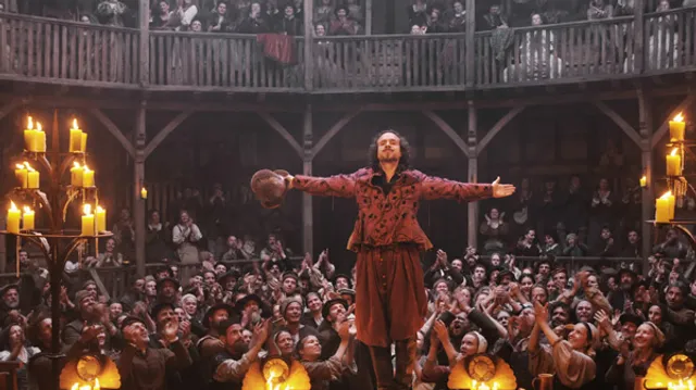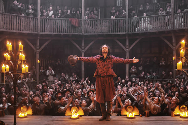 Veel sotto voce overleg in achterkamertjes dus, maar Emmerich zou Emmerich niet zijn als daar geen bak spektakel tegenover zou staan. De toneelstukken die onder Shakespeare’s naam worden opgevoerd – volgens de film was de schrijver in werkelijkheid een derderangs acteur en een oplichter – zitten zo vol stunts en special effects dat het lijkt alsof Emmerich stiekem wil beweren dat de Hollywoodblockbuster de enige rechtmatige 21ste-eeuwse erfgenaam van die stukken is. Bravoure die de megalomane Duitser zou passen.