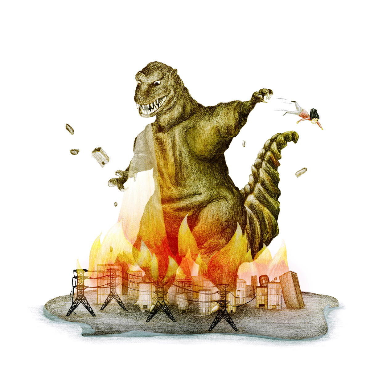 In de oorspronkelijke film ontwaakt hij nadat er een atoombom op Japan is gevallen, en dat was zo kort na de aanvallen op Hiroshima en Nagasaki natuurlijk geen toeval. ‘Het grote thema van de film is de angst voor de bom,’ verklaarde producent Tomoyuki Tanaka onomwonden. ‘De mens heeft de bom gemaakt, en nu neemt de natuur wraak op de mens.’ Dat zo’n metafoor na vijfenzestig jaar, in tijden van klimaatopwarming, ontbossing en bio-industrie, nog altijd aanspreekt is niet onbegrijpelijk.
