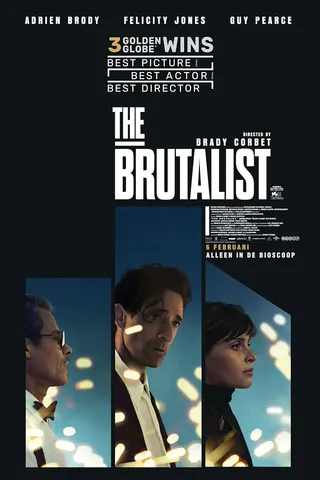 Toch lukte het Corbet en Fastvold de nodige geldschieters en productiehuizen van hun ambitieuze filmplannen te overtuigen. En de investering lijkt zich voor die betrokken filmbedrijven ook uit te betalen: niet alleen viel The Brutalist in de prijzen op het filmfestival in Venetië, waar het drama vorig jaar in première ging, de film sleepte ook drie Golden Globes in de wacht – voor beste dramafilm, beste regisseur en beste acteur – en werd maar liefst tien keer genomineerd voor een Oscar.