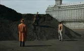 De camera zit Tóth dicht op de huid, terwijl hij zich een weg baant door de joelende menigte. In de voice-over horen we zijn in Hongarije achtergebleven vrouw (Felicity Jones) somber een brief voorlezen waarin staat dat ze hem achterna zal reizen wanneer dit kan, omdat er voor hen in Hongarije niets meer is om voor te leven. Onheilspellend getik – de vervreemdende, machinaal klinkende soundtrack is afkomstig van Daniel Blumberg – maakt de scène nog intenser.