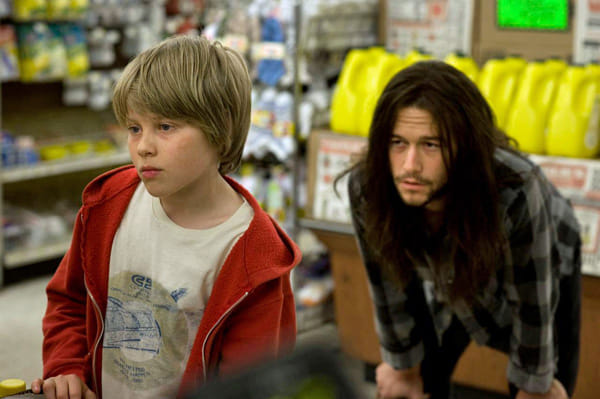 Daarna houdt de vergelijking snel op en verandert Hesher in een grillige Amerikaanse independent. TJ, zoals het jochie heet, woont sinds het auto-ongeluk waarbij zijn moeder is omgekomen met zijn vader bij diens moeder in. Daar zit zomaar opeens een Jezus-achtige figuur op de bank, Hesher ( Joseph Gordon-Levitt), met lange viezige haren en een ontbloot bovenlijf, zodat zijn vele tatoeages – waaronder een enorme opgestoken vinger op zijn rug – goed zichtbaar zijn.