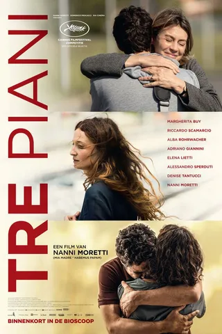 Tre piani (vanaf 28 oktober in de Nederlandse bioscopen) gaat over het wel en wee van de bewoners van drie verdiepingen (de 'tre piani' uit de titel) van een appartement in Rome. De roman van de Israëliër Eshkol Nevo, waarop deze film gebaseerd is, werd in handen van Nanni Moretti (La stanza del figlio) een opvallend zwartgallig melodrama over gespannen vader-zoonverhoudingen, mogelijk kindermisbruik en postnatale depressies.