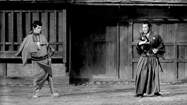 Een ronin (een samoerai zonder meester) arriveert in een negentiende-eeuws dorp, waar hij al zijn vindingrijkheid en vechtkunst gebruikt om twee lokale misdaadbazen tegen elkaar op te zetten. Deze verhaallijn wordt een paar jaar later door Sergio Leone vrijwel letterlijk overgenomen voor zijn zeer succesvolle spaghettiwestern A Fistful of Dollars (1964). Wat uitdraait op een door Kurosawa gewonnen rechtszaak, die hem uiteindelijk – zo grapte hij altijd – veel meer zou opbrengen dan wat hij met Yojimbo had verdiend.