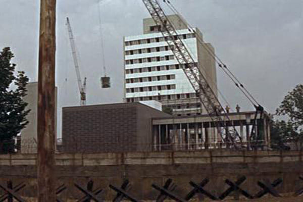 De meest spectaculaire ontsnapping uit de DDR zit in de openingsscène van de spionagethriller Funeral in Berlin. De Berlijnse Muur wordt gepresenteerd als een fort, waar niet doorheen te komen is. Soldaten houden vanuit uitkijkposten en legervoertuigen nauwlettend de Muur in de gaten. Een man, die een mijn heeft neergelegd vlakbij de Muur, rent opeens richting de grijze wand en op dat moment komt er vanuit het niets een betonsilo uit de lucht. De onbekende man springt erin en een kraan, waaraan de silo vastzit, brengt hem over de Muur naar West- Berlijn, ondanks de schoten van de DDR-soldaten. Het blijkt te gaan om een pianist die vlucht naar de vrijheid.