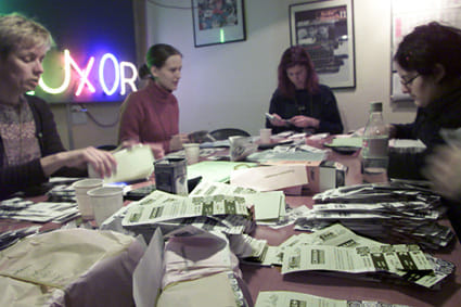 Bischof: 'De inzet en betrouwbaarheid van onze vrijwilligers is van cruciaal belang. Het grootste probleem dat we tot nu toe hebben gehad, was toen op één dag drie van onze enquêteurs en tellers ziek waren, en een treinstoring ervoor zorgde dat een heleboel anderen te laat waren. Dan moet je 10, 15 gaten opvullen. Maar verder loopt het zonder noemenswaardige problemen. Tenslotte werken we met ervaren vrijwilligers: sommigen lopen al tien jaar rond bij de Publieksprijs, en op die mensen kun je altijd een beroep doen, ook al hebben ze eigenlijk geen dienst.' Als dank voor hun inzet ontvangen de vrijwilligers een passe-partout, een catalogus, een T-shirt en speciaal cadeau: een step.
