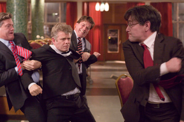 Kwam ook weer in een rij terecht. Buiten. Het regende. Een half uurtje. Toch zaten er bij aanvang van de film slechts een stuk of dertig journalisten in de enorme zaal. Soms is zo'n rij overigens zo gek nog niet. Ik kwam aan de praat met Howard Feinstein, een Amerikaanse freelance journalist. Toen hij opmerkte dat ik uit Nederland kwam, begon hij een beetje te mopperen. Hij had voor Vrij Nederland een groot verhaal geschreven over de Amerikaanse remakes van drie Theo van Gogh-films, en zijn naam was verkeerd gespeld op de cover. Maar hij was niet echt boos; hoofdredacteur Emile Fallaux is een oude vriend van hem, en op vrienden word je niet boos. Enfin, Feinstein bleek ook programmeur van het filmfestival van Sarajevo, en vroeg of ik daar volgend jaar eens wil komen kijken.