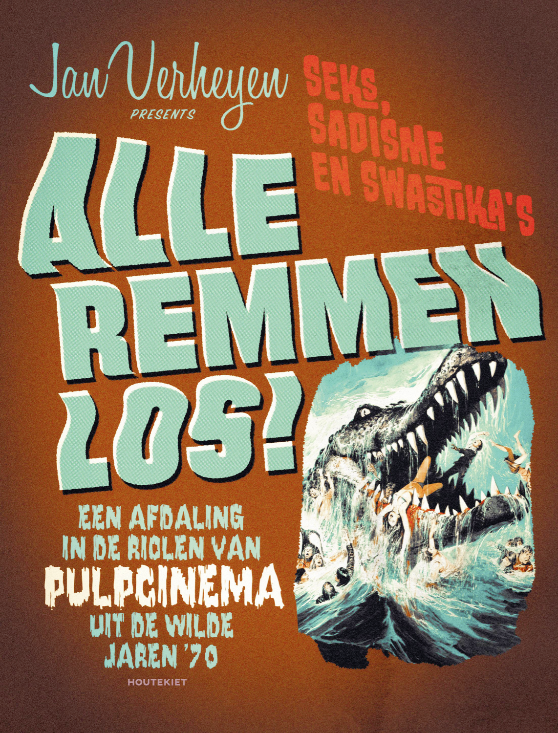 Het zijn geen genres waar je bij Netflix of Videoland doorheen kan scrollen: nunsploitation, kannibalenhorror, tirolersekskluchten. In zijn ruim vierhonderd pagina’s tellende naslagwerk Alle remmen los! schrijft Jan Verheyen bij het zoveelste obscure subgenre: ‘Veel gekker moet het niet worden, ik weet het, ik wéét het, maar ik ben ook maar de geschiedschrijver, niet de uitvinder van al deze rariteiten.’