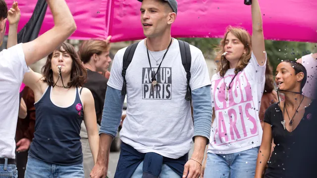 Actiegroep Act Up – Aids Coalition to Unleash Power – werd in 1987 opgericht in New York en viel op doordat de leden doelbewust de confrontatie zochten, om zo de erkenning en behandeling van aids op de politieke agenda te krijgen.