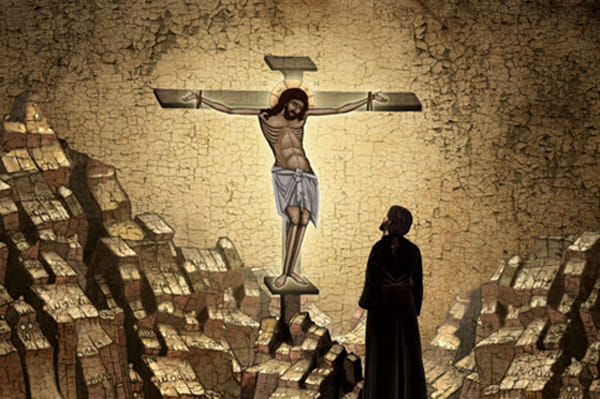 Een Griekse monnik en een Russische non ontmoeten elkaar in het geheim in de vallei die hun kloosters, beide gesitueerd op een hoge rotspilaar, van elkaar scheidt. Vrijwel niets komt de kijker over het liefdespaar te weten. Symbolen zijn ze, van het aloude dilemma tussen lust en devotie.