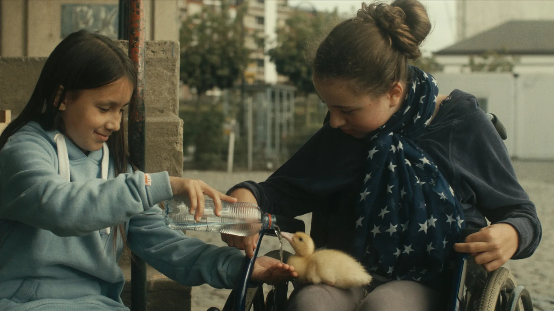 Een verwend en verwaarloosd meisje krijgt van haar jofele gescheiden vader een eendenei voor haar tiende verjaardag. Reden voor puberaal gedrein, totdat haar nog sneuere vriendin tot eendenmoeder wordt gebombardeerd door het aaibare diertje. In de eerste jeugdfilm van Waalse filmmaker Olivier Ringer kwam de troost van een veulen, in de tweede was het een wolf, en nu dus een piepkuiken. En het werkt. Ringers films staan bol van authentiek jeugdleven, dat zich net iets buiten de gangbare realiteit afspeelt dankzij de inbreng van de dieren.