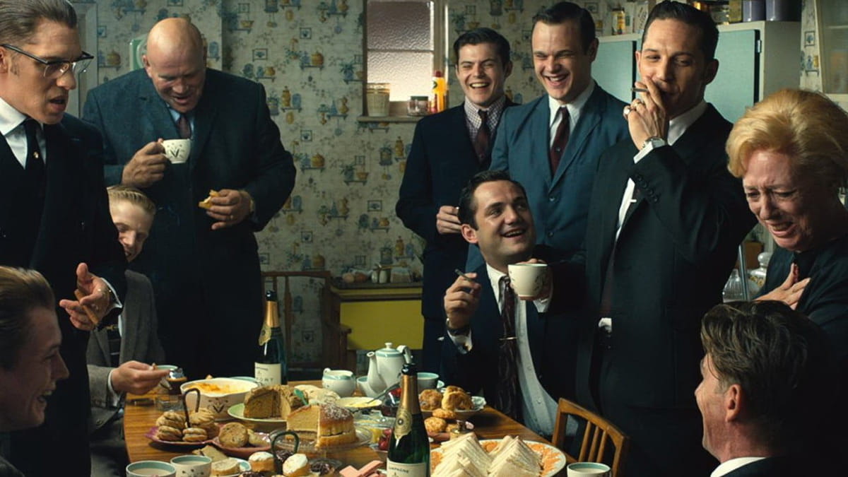 Stijlvol portret van Ronnie en Reggie Kray, tweelingbroers van simpele komaf die in de jaren vijftig en zestig vanuit arbeiderswijk East End met ijzeren vuist over de Londense onderwereld regeerden. Beroemdheden waren het, wier levens hevig verweven waren met de Britse elite, al staat heden ten dage vooral de bizarre en knullige manier waarop hun koninkrijk ten einde kwam in de geheugens gegrift. Acteur Hardy imponeert in een dubbele hoofdrol, al schuurt hij met name als homoseksuele psychopaat Ronnie langs de randen van de klucht.
