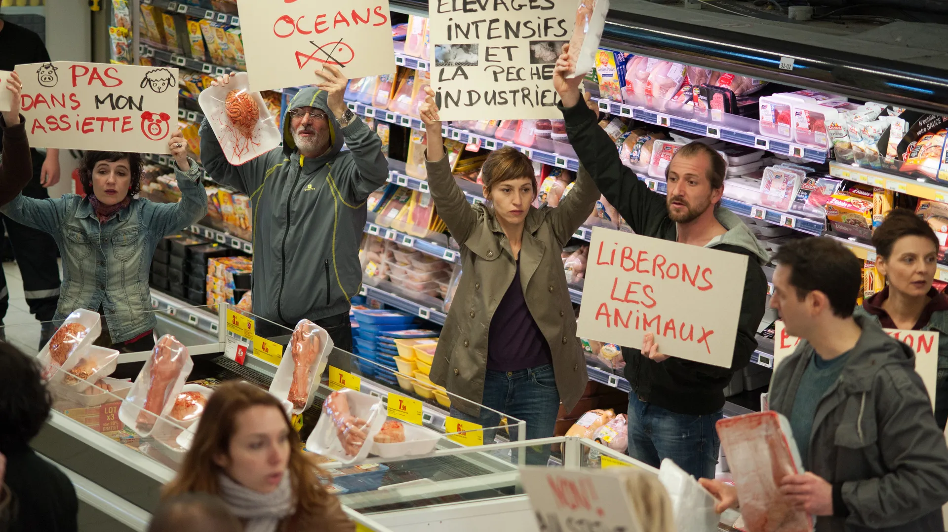 Militante dierenarts Estelle (Adler) kijkt verder dan haar operatietafel, en vult haar vrije tijd met al dan niet gewelddadige acties op plaatsen waar dieren worden geslacht en/of vlees wordt verkocht. Geen geschikte locaties voor een romance met een halsstarrige politieman (Zaccaï) die de orde moet bewaren, maar al snel lopen de gevoelens voor mens, dier en de orde der dingen kriskras door elkaar. Waar deze tv-film het van moet hebben is moeilijk te zeggen, want het pamfletgedeelte heeft geen gewicht en de romantiek is onecht. Zielig voor de toch al sneue fokdieren, zo'n vruchteloze film.