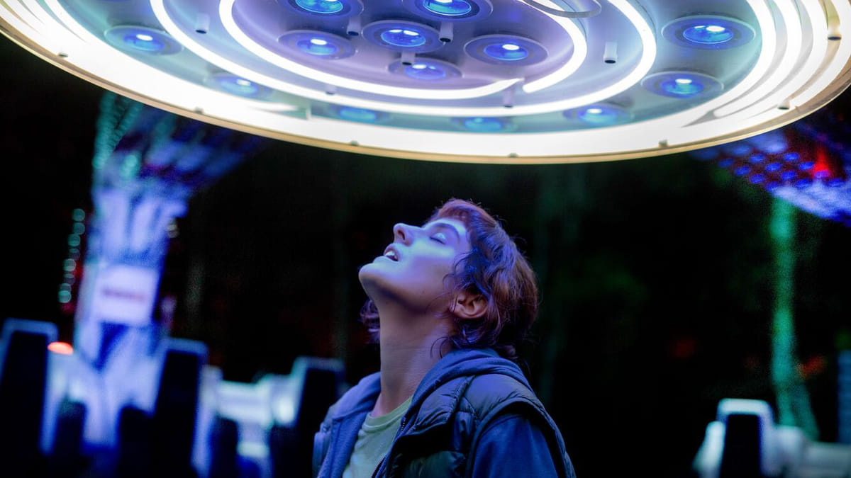De verlegen maagd Jeanne (Merlant, uit Portrait of a Lady on Fire) werkt in een pretparkje in de Ardennen. Tijdens haar nachtelijke schoonmaakdienst raakt ze onder de indruk van de nieuwe kermisattractie Move It, met zijn stalen octopusarmen en wulpse lampenbollen. Een mooi vormgegeven, modern sprookje over een onmogelijke liefde, dat refereert aan veel verwante films: van Belle en het Beest tot Close Encounters of the Third Kind. Hoewel de verhaallijn nogal standaard is, is het knap hoe de kijker op de hand van het meisje blijft, ondanks het onwaarschijnlijke uitgangspunt.