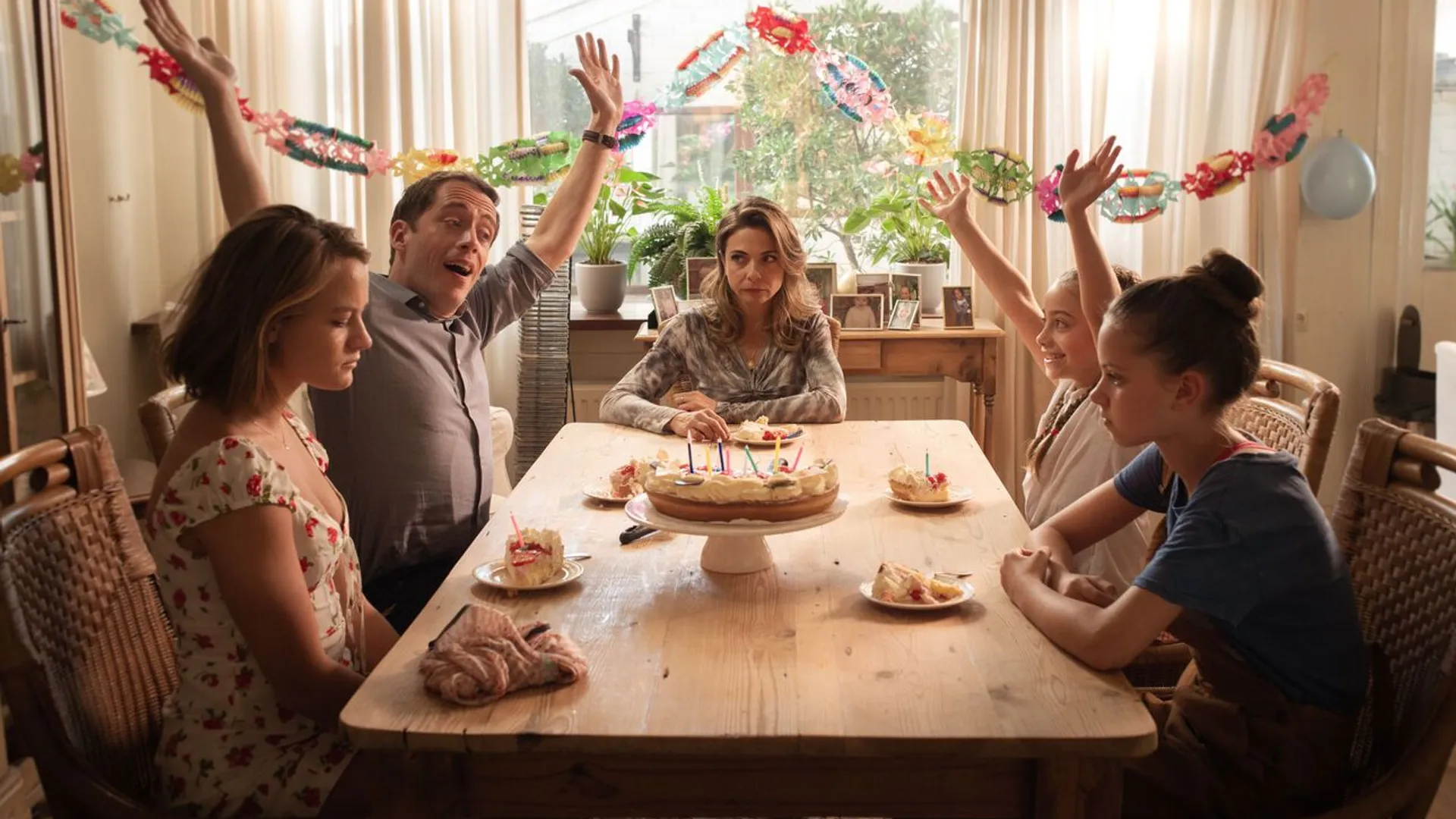 Bestsellerauteur Arthur Japin liet zich voor de roman Maar Buiten is het feest (2012) inspireren door het levensverhaal van zangeres Karin Bloemen. In deze verfilming is de diva niet meer te herkennen: hoofdpersoon Sonne (Hoes) is een hippe singer-songwriter geworden die zich uitleeft op festivalpodia. Haar vrolijke imago is echter schijn: ze verzwijgt een traumatisch misbruikverleden. In beklemmende flashbacks wordt overtuigend verbeeld hoe ze als kind in de val wordt gelokt door haar stiefvader (Smits). De scènes in het heden komen minder goed uit de verf, met dialogen en stijlkeuzes die te weinig aan de fantasie overlaten.