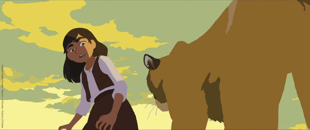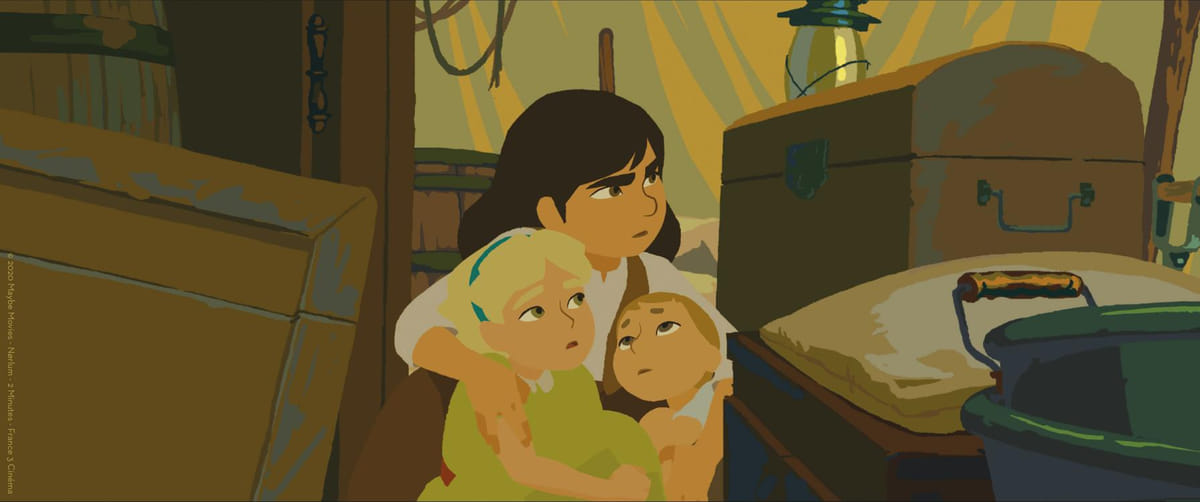 Regisseur Chayé debuteerde in 2015 met de opvallend sober geanimeerde familiefilm Reis naar het noorden, over de poolexpeditie van een negentiende-eeuws meisje. In Calamity staat opnieuw een jonge historische heldin centraal: Martha Jane Cannary, de latere wildwestvedette Calamity Jane. In diezelfde minimalistische maar prachtig kleurrijke stijl zien we de twaalfjarige Jane in een karavaan naar het westen trekken, worstelend met het harde pioniersbestaan en de dominante mannen om zich heen. Het verhaal is prima, maar het zijn vooral de plaatjes, de weidse, schemerige landschappen, die betoveren. Bekroond met de hoofdprijs op Cinekid 2020. Nederlandstalige versie met stemmen van Venna van den Bosch, Vera Mann en Jonathan Demoor.