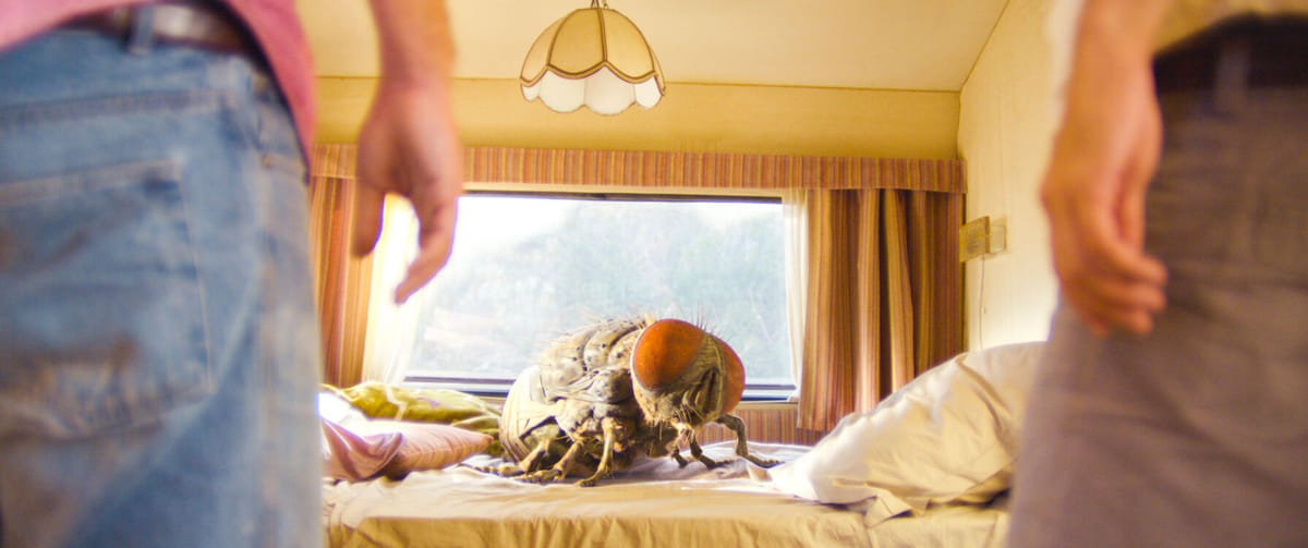In de Franse film Mandibules proberen twee nietsnutten een gigantische vlieg af te richten. Typisch een verhaal van absurdist Quentin Dupieux.
