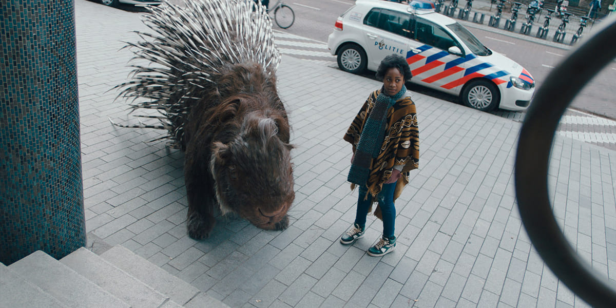 De elfjarige Ama uit Rotterdam Crooswijk is kind van illegale Senegalezen, het credo is dus ‘wat er ook gebeurt, ga nooit naar de politie.’ Maar dan pakt de politie opeens haar moeder en zusje op en moet Ama op zoek naar haar vader. Ze krijgt hulp van haar totemdier, een groot stekelvarken, gemaakt met animatronics, dat er qua textuur super uitziet, maar nogal houterig beweegt. In deze sprookjesachtige feelgood-kinderfilm over een stevig onderwerp is er wel meer stroef, zoals het naïeve slot en de beurtelings naar links en rechts overhellende camerahoeken die de kijker zeeziek maken.