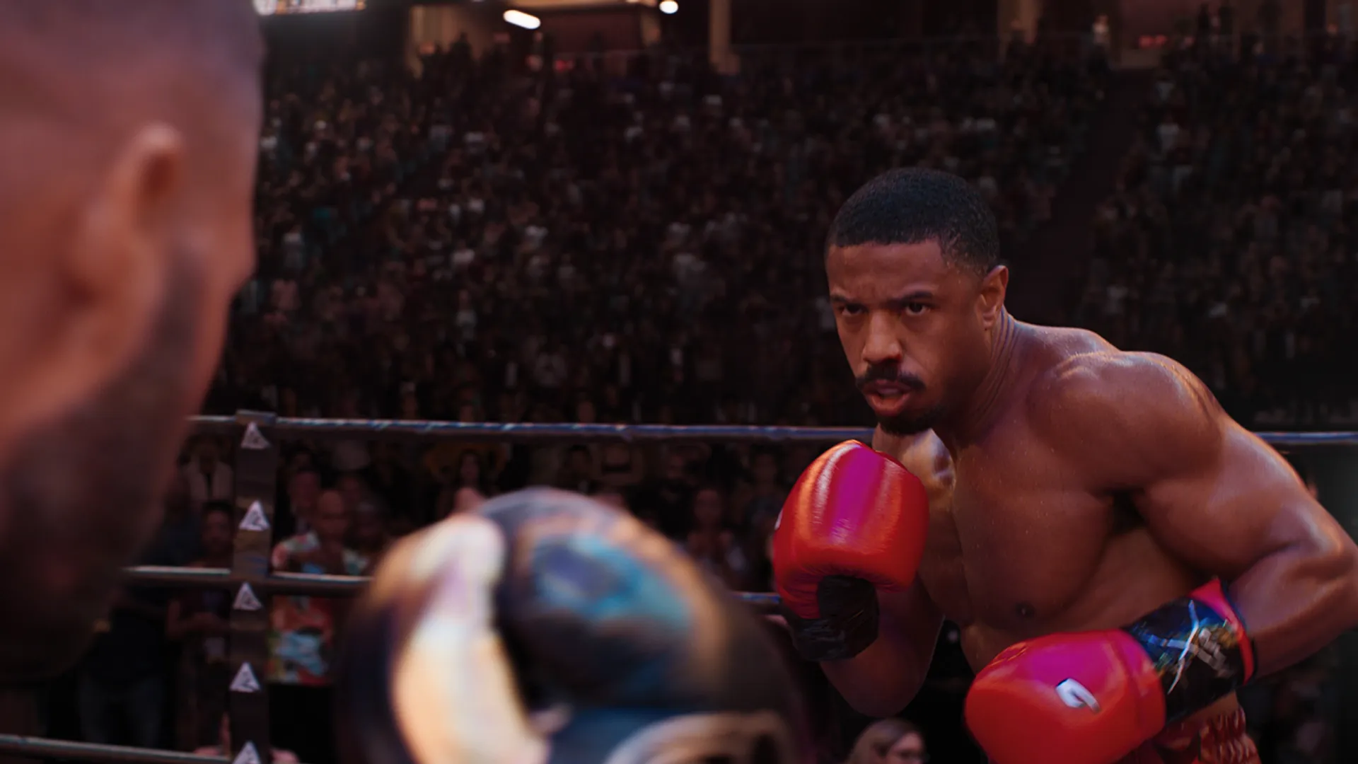 Creed III begint nogal soapy. Al snel hangt Adonis (Jordan, die dit deel ook regisseerde) zijn handschoenen aan de wilgen en probeert hij een brave huisvader te zijn. We zien hoe vrouw Bianca worstelt met haar verslechterende gehoor, hoe dove dochter Amara ruzies heeft op school en dat het steeds slechter gaat met Adonis’ moeder. Gelukkig staat ineens ‘Diamond’ Dame Anderson (een uitstekende Majors) bij Adonis op de stoep, een jeugdvriend uit een diep weggestopt verleden. Die wil na achttien jaar gevangenis weer boksen en Adonis moet hem daarbij helpen. De rest van de film laat zich snel raden, wat uiteindelijk in het laatste half uur dan toch nog een prima boksfilm oplevert.